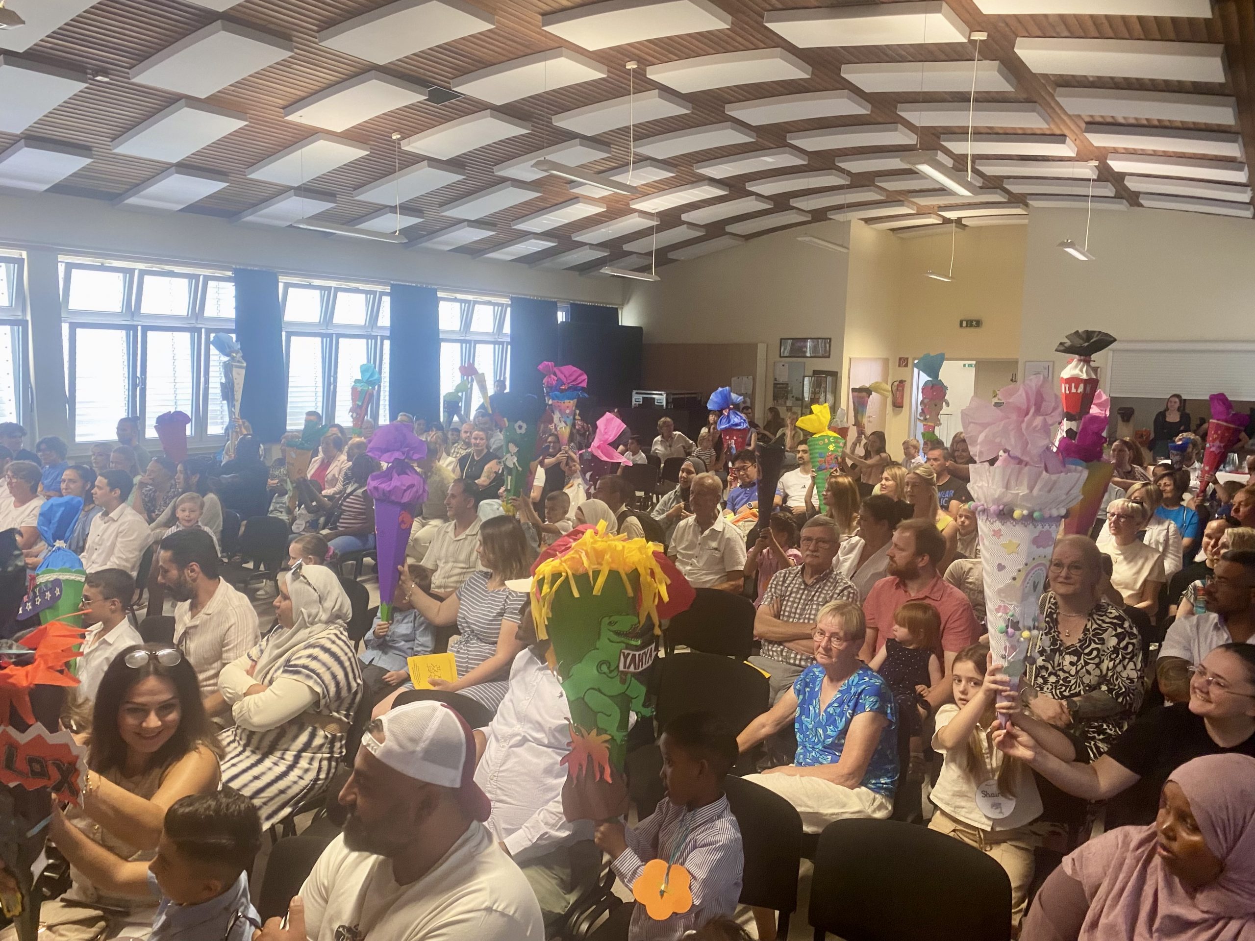Anschließend bereiteten unsere Zweitklässler den Schulneulingen musikalisch und schauspielerisch ein herzliches Willkommen, das von den zahlreichen Gästen im Christophorussaal mit viel Applaus und lachenden Gesichtern belohnt wurde.