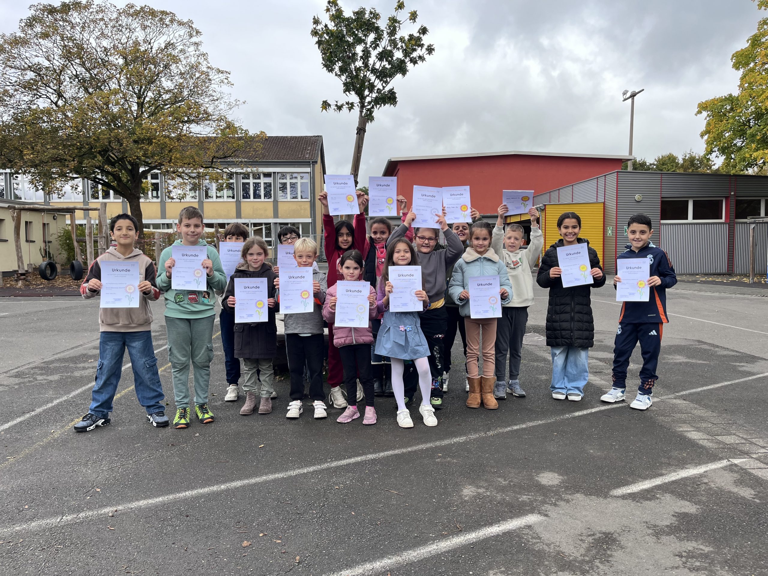 Am Mittwoch, den 08.10.2024 wurden zum ersten Mal in diesem Schuljahr zwei Kinder aus jeder Klasse geehrt, die sich in den letzten Wochen ganz besonders gut an unser Motto „Ich bin hilfsbereit“ gehalten haben. Trotz leicht kühlem und nassem Herbstwetter nahmen sie stolz ihre Urkunde entgegen und freuten sich über den großen Applaus der gesamten Schulgemeinschaft! Herzlichen Glückwunsch!