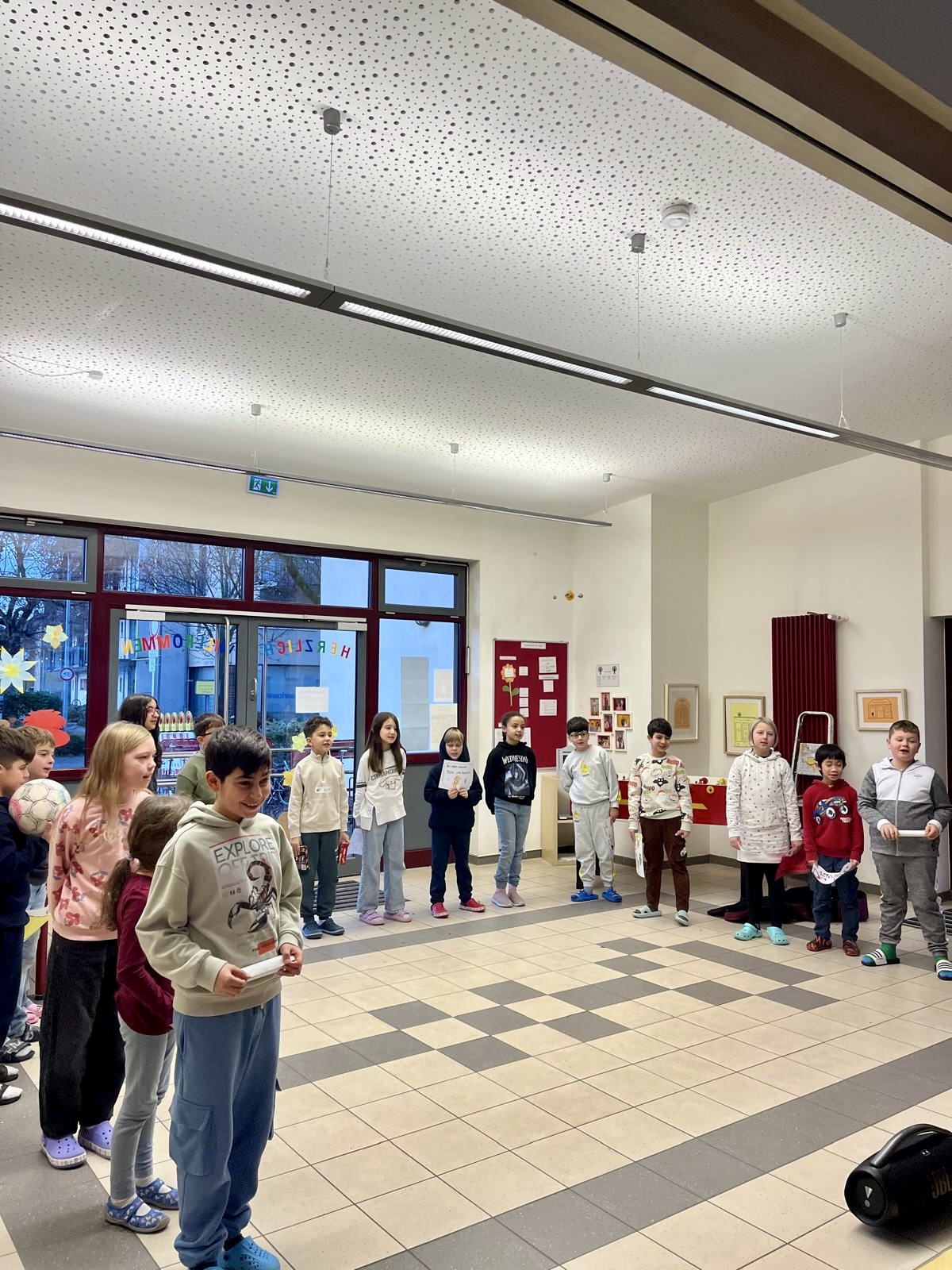 Stufe vier startete mit zwei weihnachtlichen Theaterstücken sowie einem musikalischen Beitrag, der von den Kindern mit Instrumenten begleitet wurde. In der nächsten Woche sangen die beiden dritten Klassen jeweils ein Lied. Stufe zwei bildete in der letzten Schulwoche den Abschluss mit einem weihnachtlichen Tanz und einer vorgetragenen Geschichte. Alle Auftritte wurden mit Applaus gewürdigt und mit gemeinsamem Singen zwischen den einzelnen Stücken abgerundet.